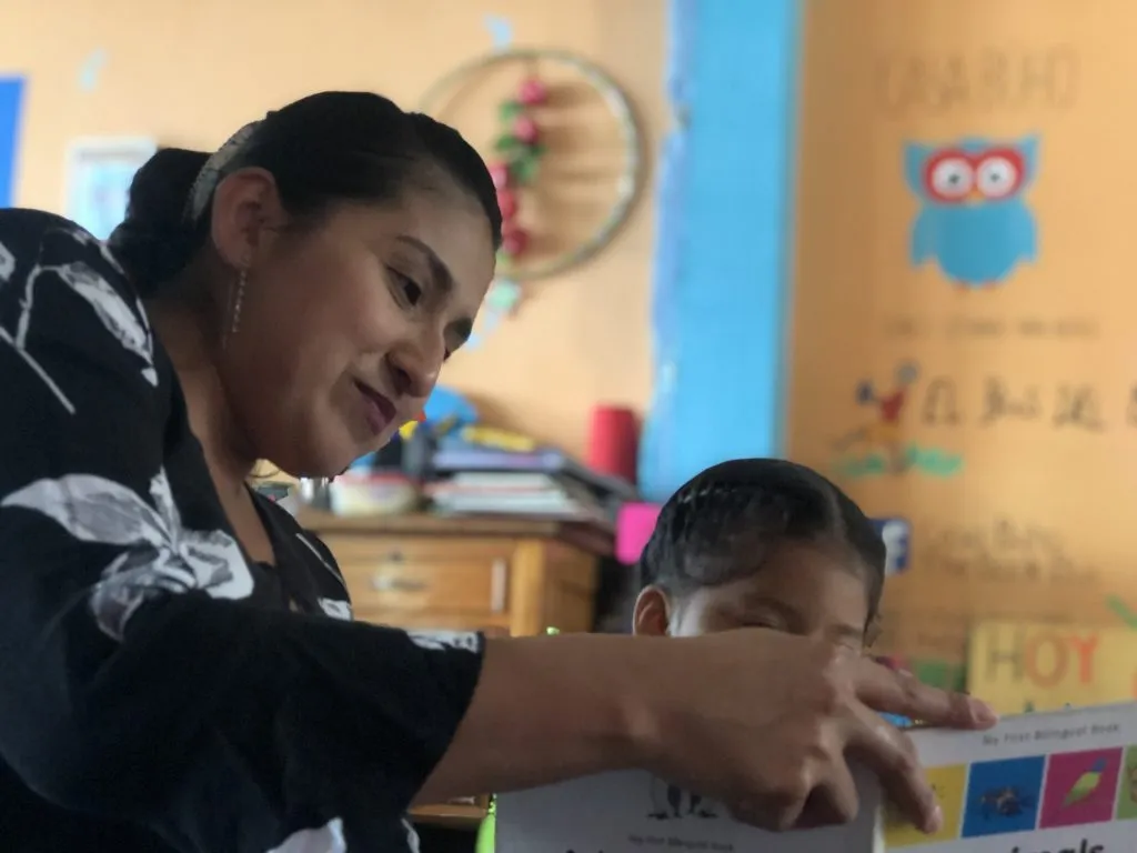 Hilda, junto a Paulette su hija, leen juntas en el taller Peque Búhos