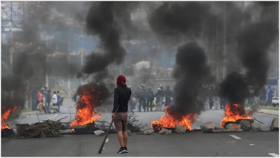 Decenas de personas participan en el décimo día de protestas contra el Gobierno este sábado, al Este de Quito (EFE)