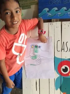 Many exciting things were happening this week. The children began school again and many of them go in the afternoon so, for the first time ever, we are having mornings at Casa Búho on Mondays and Fridays from 9:30 AM-11:00AM. On Friday mornings we are teaching English classes-another first! English classes are also being taught on Tuesday afternoons during our regular session-another first! We also started a session on Thursday afternoons for children 2-4 years old. This is the first time that age group has attended Casa Búho. We read, played and did bubble and blow painting. Wednesday we had our regular Study An Artist Session where we learned a little bit about Pablo Picasso and saw many of his works on my IPad. During the creativity part of the session we used Picasso’s Bouquet of Peace as our inspiration. Enjoy some of the results!