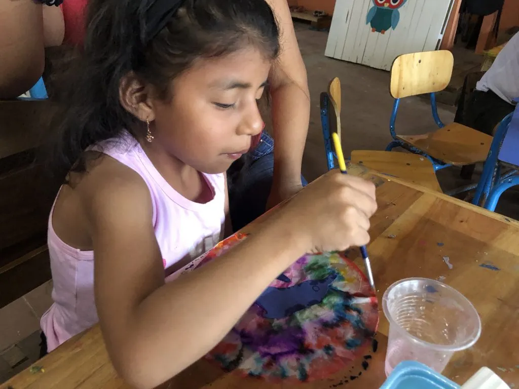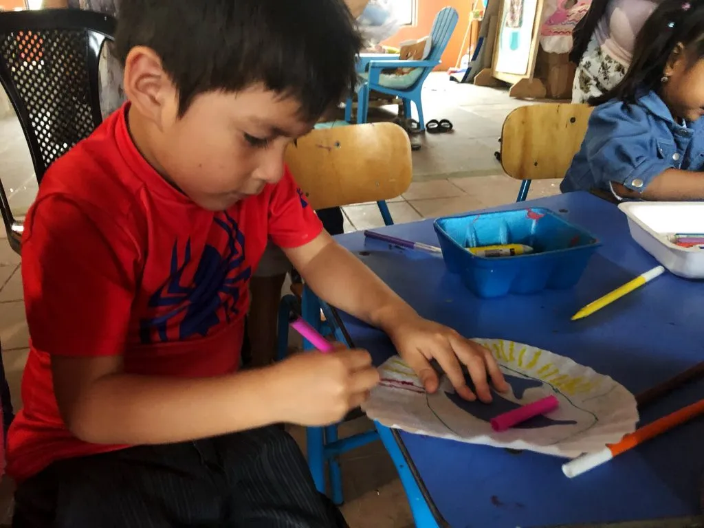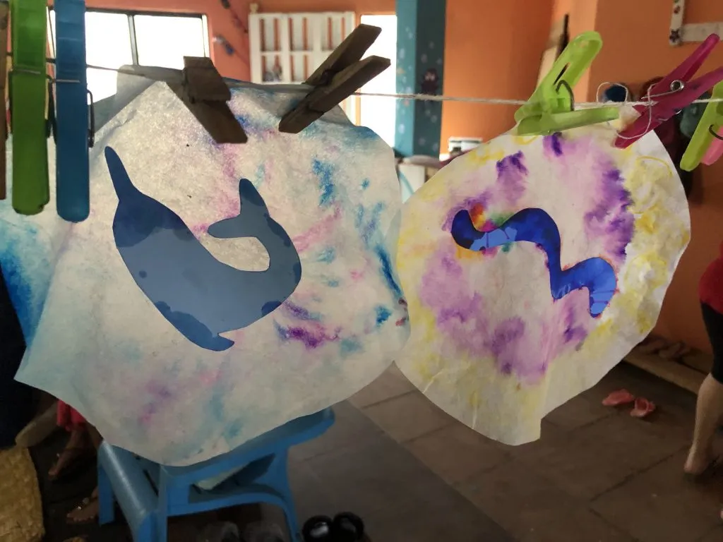 Thursday afternoon’s PequeBúhos group also practiced their boisterous version of “Walking in the Jungle” before decorating sun catchers with markers and animals of the Amazon River. When they added water to the sun catchers, the colors ran together making a bright background and lovely decoration for their homes, so they (hopefully) continue thinking about the creatures of the Amazon this month.