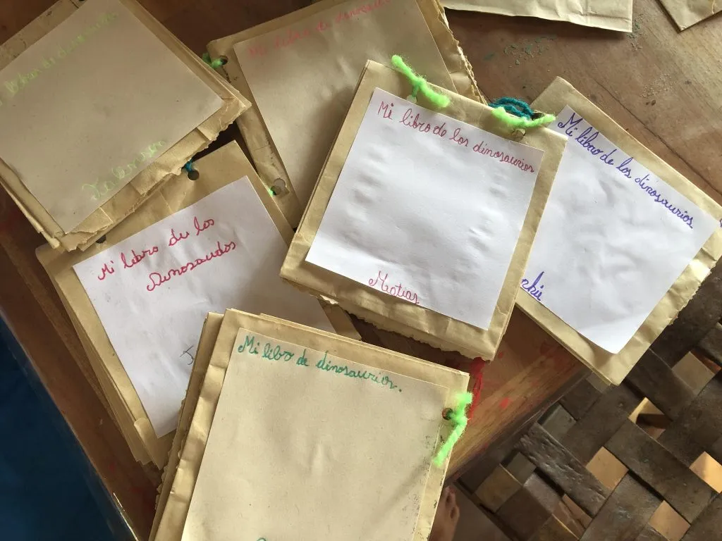 El martes por la tarde comenzamos a realizar una actividad que no podrá ser terminada en una sola sesión. Se trata de ‘mi libro de dinosaurios’. Hacemos nuestro propio libro en el que dibujaremos nuestros dinosaurios favoritos y escribiremos los datos más importantes de estas criaturas fascinantes.