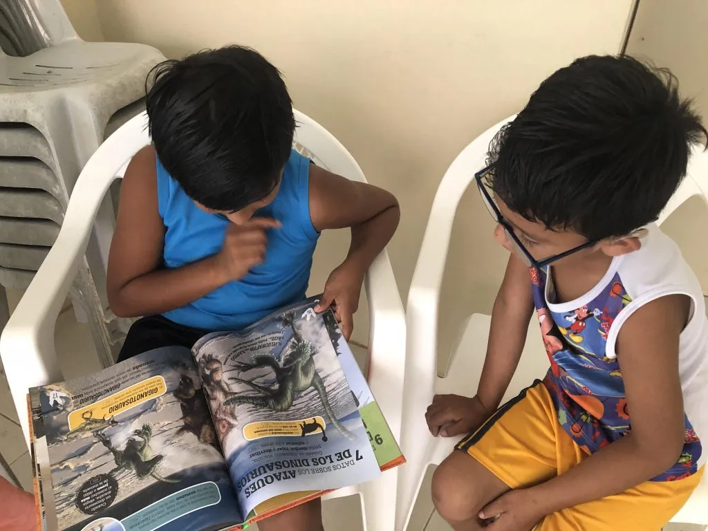 Como cada miércoles fuimos a la comunidad de San Isidro donde nos esperaban los niños y niñas para leer y trabajar con el tema de los dinosaurios. Hicimos unos pterodáctilos.