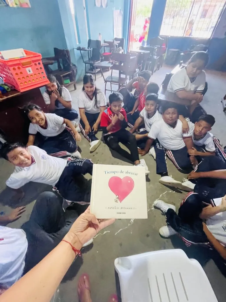 El proyecto Casa Búho tiene como objetivo que los niños, niñas y jóvenes accedan a la educación, a los libros, al conocimiento, así como al placer de la lectura. La atención se centra también en el fortalecimiento de la personalidad y las habilidades sociales. Esta semana se mostró lo importante que es hablar unxs con otrxs e intercambiar sentimientos, pensamientos e inquietudes. La cohesión y la consideración mutua son cruciales para una coexistencia armoniosa. Casa Búho quisiera traer aún más amor al pueblo y debido a un episodio de violencia a nivel político de la localidad vecina, espontáneamente se decidió por el tema y el libro “Tiempo de abrazar” del autor integral Patrick McDonell.