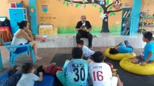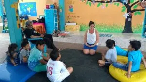 Viajaron desde Quito, por muchas horas, sólo para conocer el proyecto. ¡Mil gracias por eso! Fuimos a Casa Búho, que queda en la parroquia de Machalilla (Manabí), para trabajar con los niños y niñas que asisten regularmente al programa de las tardes.